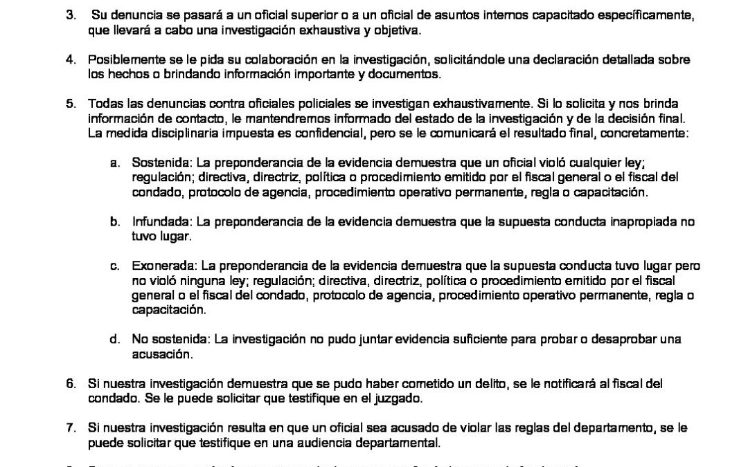 Complaint Information-Spanish